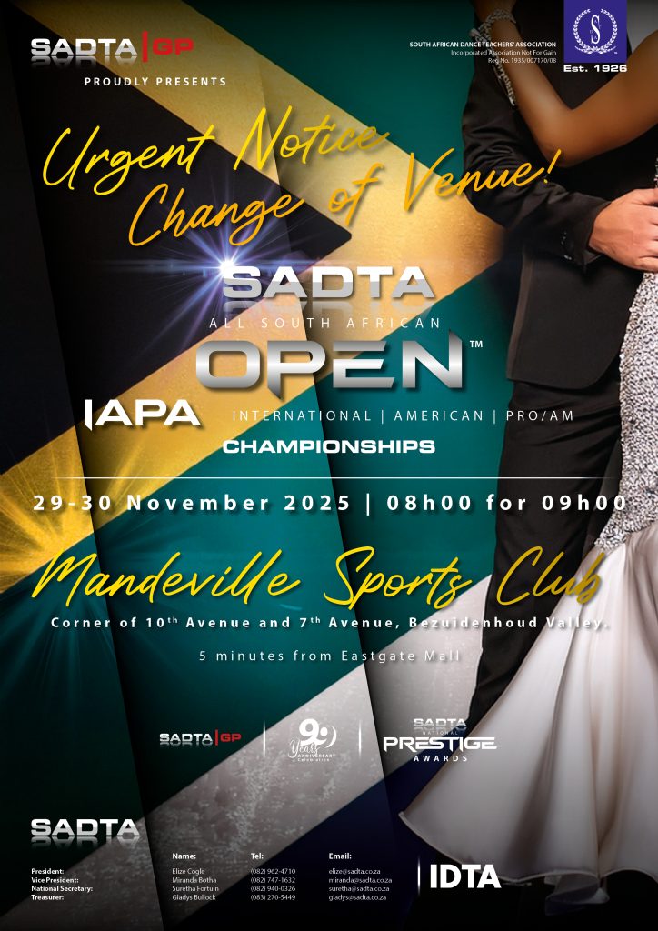 The South African Dance Teachers Association (SADTA) is a non-profit organization, established in 1935 in South Africa. Our aim is to qualify teachers and help them improve their dance teaching skills. For more than 80 years we have provided training for dance teachers and examiners, enabling teachers to enter their students for examinations and competitions as well as running many successful championships in a variety of dance styles.